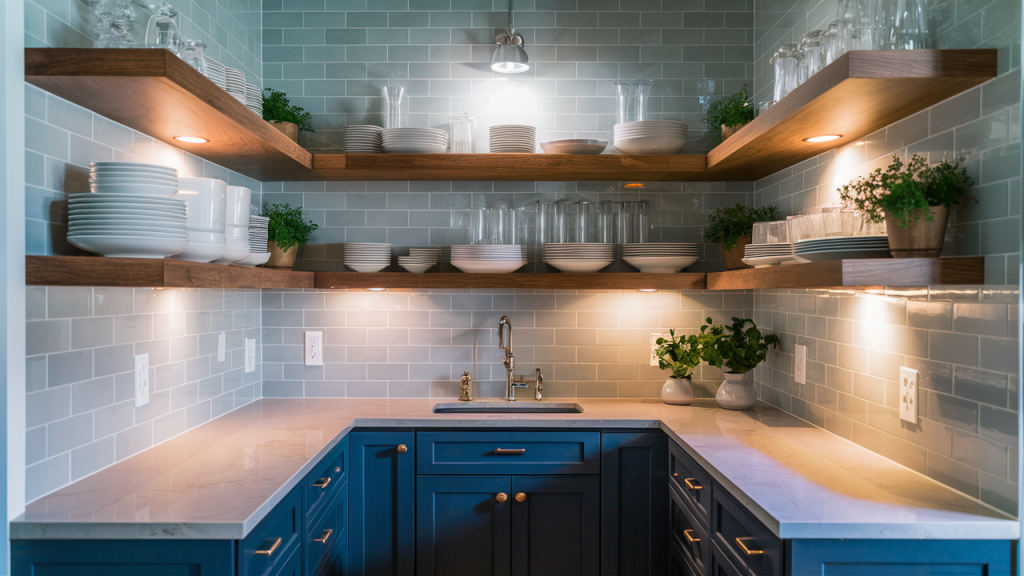 Open shelving adds both function and personality to a small kitchen by providing accessible storage without the bulkiness of traditional upper cabinets. Displaying neatly arranged dishware, glass jars, or stylish kitchen accessories keeps the space feeling curated and inviting. To maintain a tidy look, limit clutter by sticking to a cohesive color palette or using woven baskets for hidden storage while adding texture and warmth.