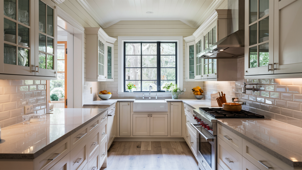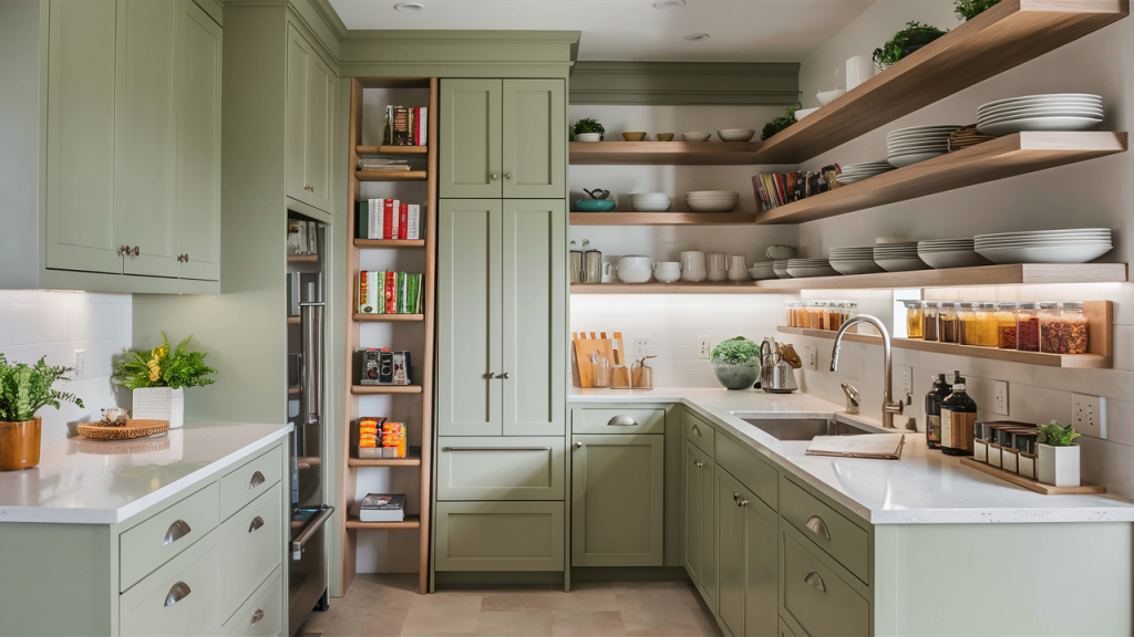 When square footage is limited, take advantage of vertical space with tall cabinets that extend to the ceiling. This not only maximizes storage but also draws the eye upward, making the kitchen feel taller. Open shelves can also be a stylish and functional addition, offering easy access to everyday essentials while keeping the space visually open. Using a mix of cabinets and shelving creates a balanced and organized look.