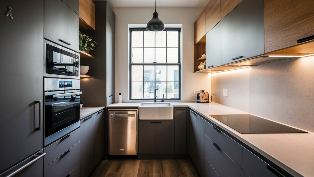 Compact appliances maximize functionality in a small kitchen without sacrificing efficiency. Look for slim refrigerators, narrow dishwashers, and built-in microwaves that seamlessly integrate into cabinetry. Induction cooktops, under-counter fridges, or single-drawer dishwashers are also smart space-saving solutions. Choosing appliances with a sleek, uniform finish ensures a cohesive, uncluttered look while maintaining all the essentials.