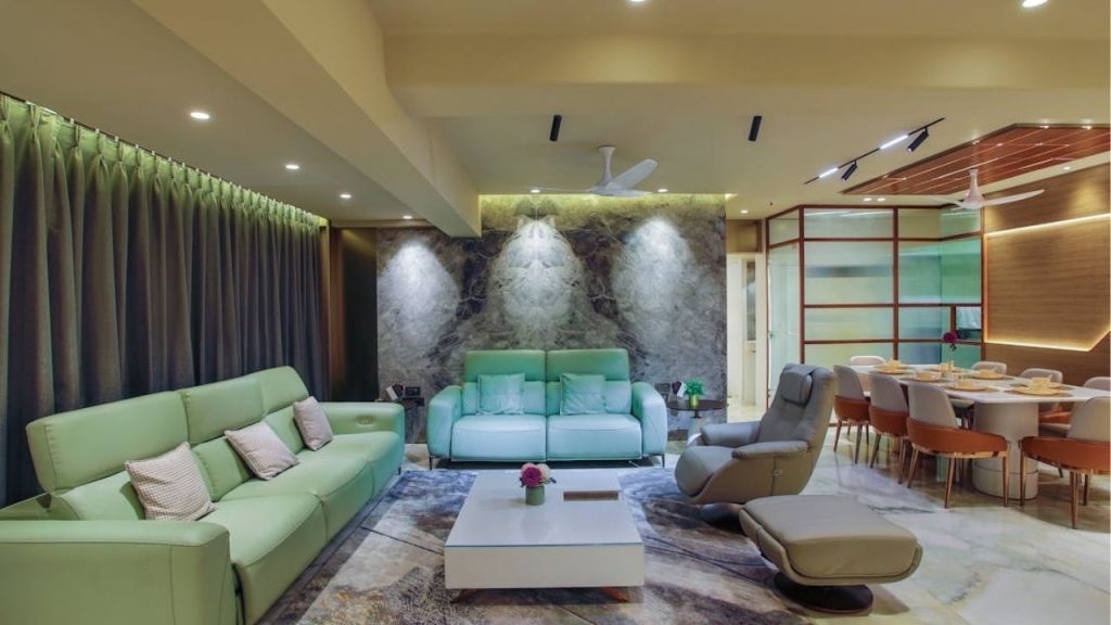 When focusing so much on layout, it’s easy to ignore the vertical plane. But walls, ceilings, and even tall shelving can play a big role in open-concept design. Use vertical elements like tall bookcases, hanging plants, or statement lighting to draw the eye up and add interest without crowding the floor. It’s a great way to enhance visual flow and make the space feel dynamic without clutter.