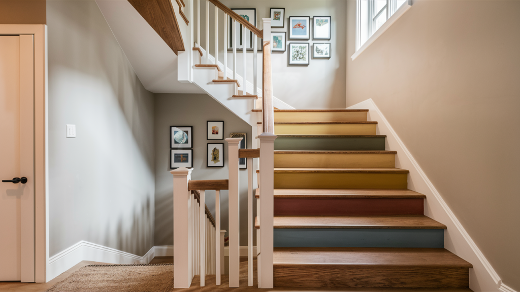 Painting stair risers in bright, unexpected colors adds personality to an otherwise overlooked area. Whether you choose a single bold hue or a gradient of complementary shades, this detail adds visual rhythm and movement. It’s especially effective in entryways or narrow staircases, where a touch of color can instantly uplift the space and tie in with other design elements around the home.