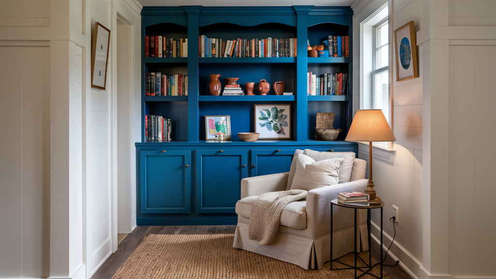 Painting built-in shelves in a bright color instantly turns them into a statement feature. Whether it’s sunny yellow, coral, or turquoise, a vibrant hue can highlight your books, décor, and personality. This approach works especially well in living rooms, offices, or bedrooms, adding depth and visual interest without repainting the entire room. Pair with neutral walls to let the shelving color shine without overwhelming the space.