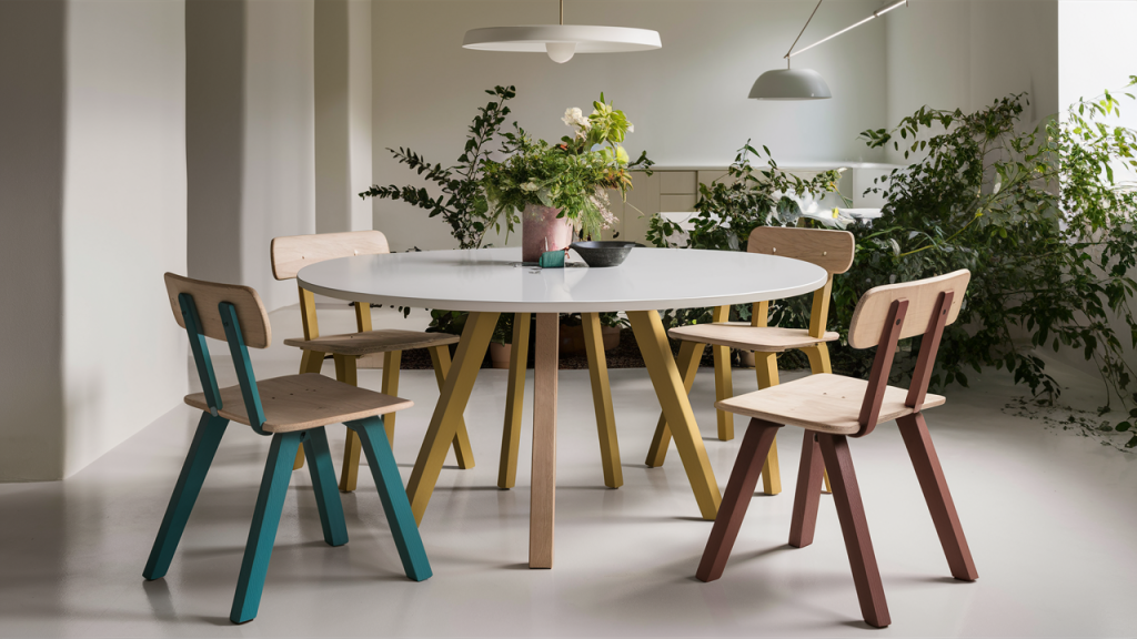 Painting the legs of chairs, sofas, or tables in a bright color offers a playful twist without overpowering the room. Think red table legs in a dining nook or mint green accents on a neutral armchair. This small detail adds personality and modernity while keeping the overall look grounded. It’s a perfect option for those who love color but want to keep it minimal and easy to change down the line.