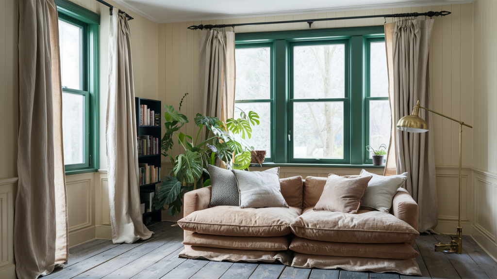 Instead of sticking with standard white, painting your window trim in a standout color adds an instant boost of personality and charm. Shades like charcoal, mustard, or olive green bring depth and contrast to a room, especially when paired with light-colored walls. This detail frames your view beautifully and adds a tailored touch that makes the space feel curated and thoughtfully designed.