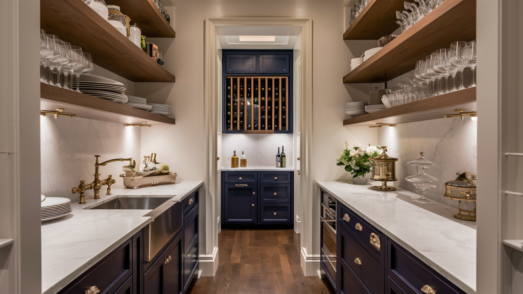 Originally designed for storing china and staging meals, butler’s pantries are reappearing in modern homes with a twist. Today’s versions often double as coffee stations, wine bars, or hidden prep spaces. They offer valuable extra storage while keeping clutter out of the main kitchen. With elegant cabinetry, marble countertops, and vintage-inspired hardware, these transitional spaces combine utility with old-school charm, making them both practical and nostalgic.