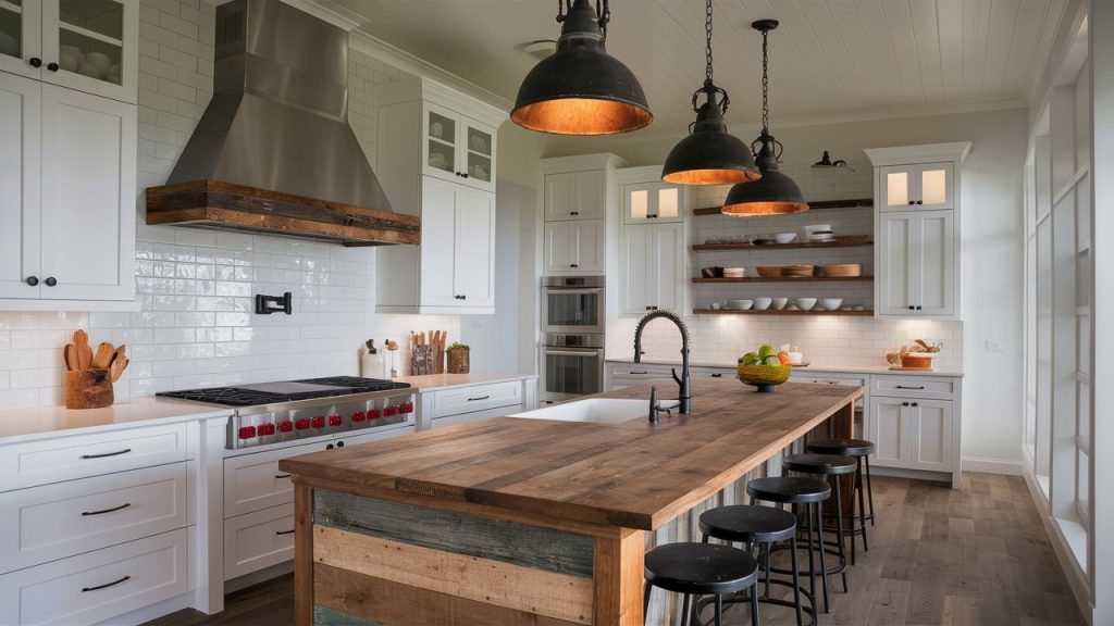 Reclaimed wood instantly infuses a rustic kitchen with history and warmth. Whether used for flooring, cabinetry, open shelving, or exposed ceiling beams, this material adds depth and charm while promoting sustainability. The natural imperfections—such as knots, grain variations, and weathered finishes—enhance the character of the space. Consider a reclaimed wood island or butcher block countertops to create a focal point. Mixing wood tones with modern elements, like matte black hardware or sleek stone countertops, ensures the kitchen remains stylish without feeling outdated or overly traditional.