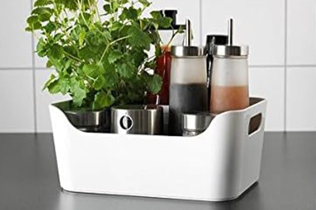 The Kitchen Storage Basket is made of durable, lightweight material with a clean, simple design. Its rectangular shape provides ample space for organizing various kitchen items, such as snacks, cleaning supplies, or kitchen tools. The open structure allows for easy visibility and access to stored items, while the handles on each side make it easy to move or carry the basket around. Its neutral color and straightforward design allow it to fit seamlessly into most kitchen spaces.