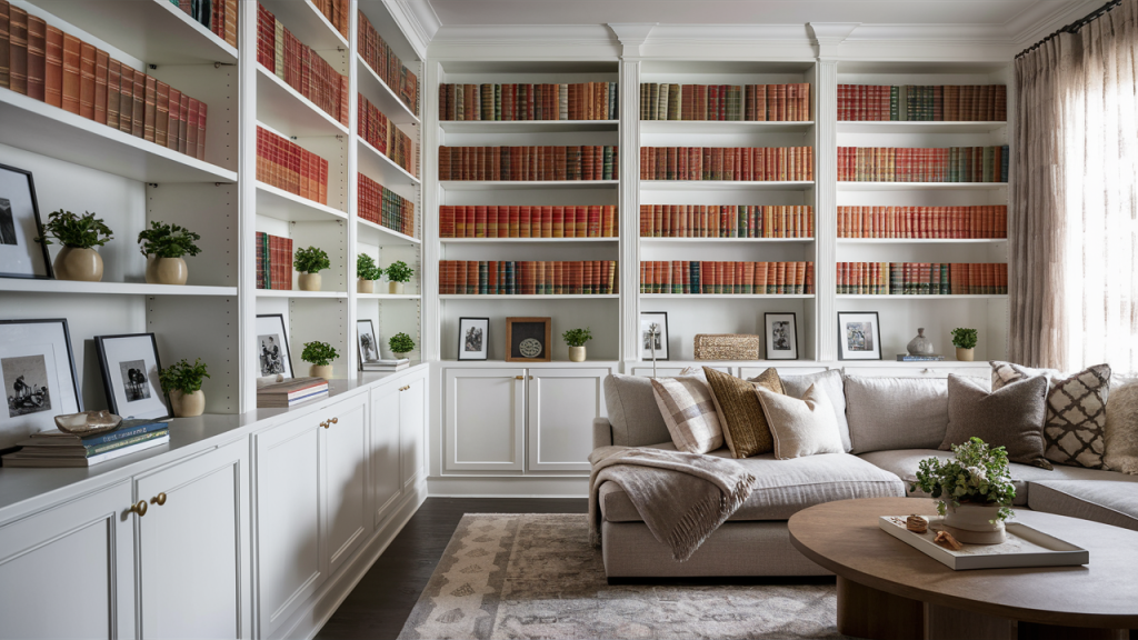 9. Turn Bookshelves into Built-Ins with Trim