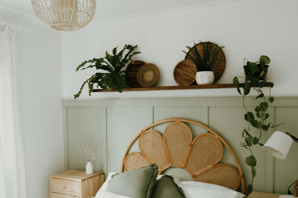 The beauty of boho-chic design lies in its use of organic materials, and rattan or wicker furniture is a must-have. A rattan bed frame, woven pendant light, or a wicker chair instantly introduce warmth and texture. These natural elements bring an airy, effortless feel that complements other bohemian staples like macramé and wooden decor. Rattan nightstands or baskets provide stylish yet functional storage solutions, keeping clutter at bay. Blending these pieces with soft fabrics and cozy lighting enhances the room’s inviting vibe while staying true to boho-chic’s natural aesthetic.