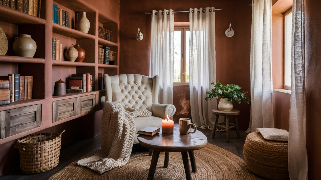 Soft sage green brings a calming, natural feel, while warm terracotta adds a grounding, sun-baked richness. This combination mimics the hues of nature, making any living space feel organic and inviting. Use sage on walls or larger furniture pieces and incorporate terracotta through accent pillows, rugs, or pottery. The contrast between the cool green and earthy orange creates a balanced, harmonious environment that feels both refreshing and warm.