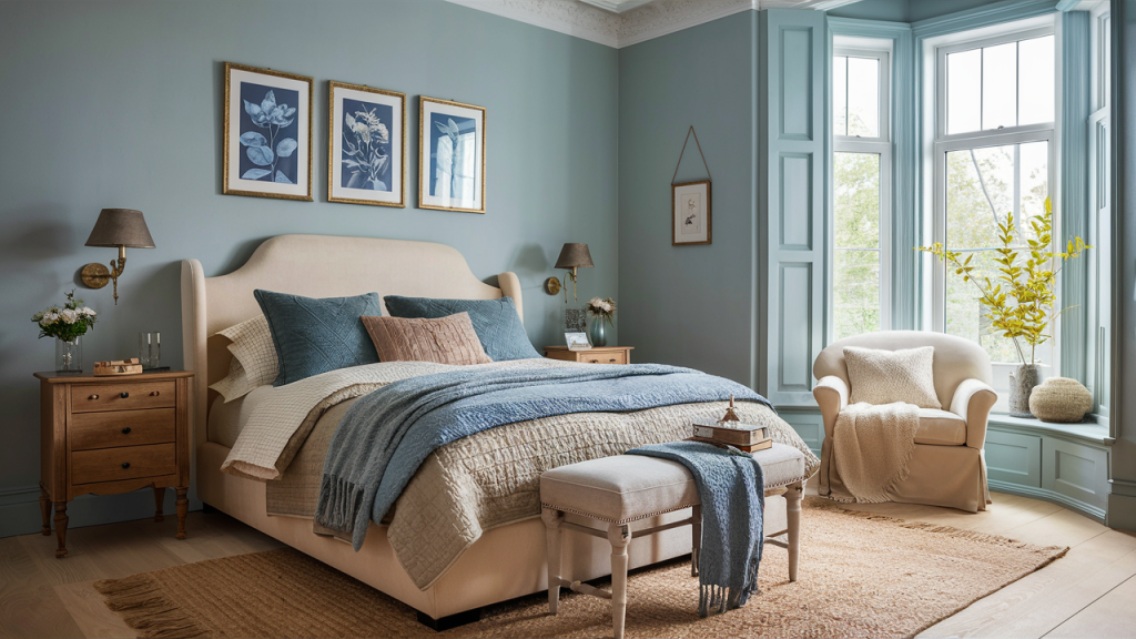 Dusty blue brings a soft, muted elegance, while warm cream keeps the space light and inviting. This combination works beautifully in both traditional and modern interiors, offering a soothing and airy feel. Try using dusty blue on accent walls, upholstery, or decorative accents, while cream acts as the neutral backdrop in furniture, rugs, and drapery. The result is a timeless, serene space that feels effortlessly relaxing and refined.