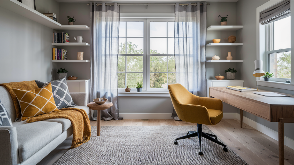 Mustard yellow injects a cheerful vibrancy, while soft gray provides a grounding, neutral base. This combination is perfect for those who want a touch of color without overwhelming the space. Use gray for walls, larger furniture, or rugs, and bring in mustard through decorative elements like throw pillows, lamps, or an accent chair. The result is a warm, inviting space with a refined, slightly retro feel that still feels modern and fresh.
