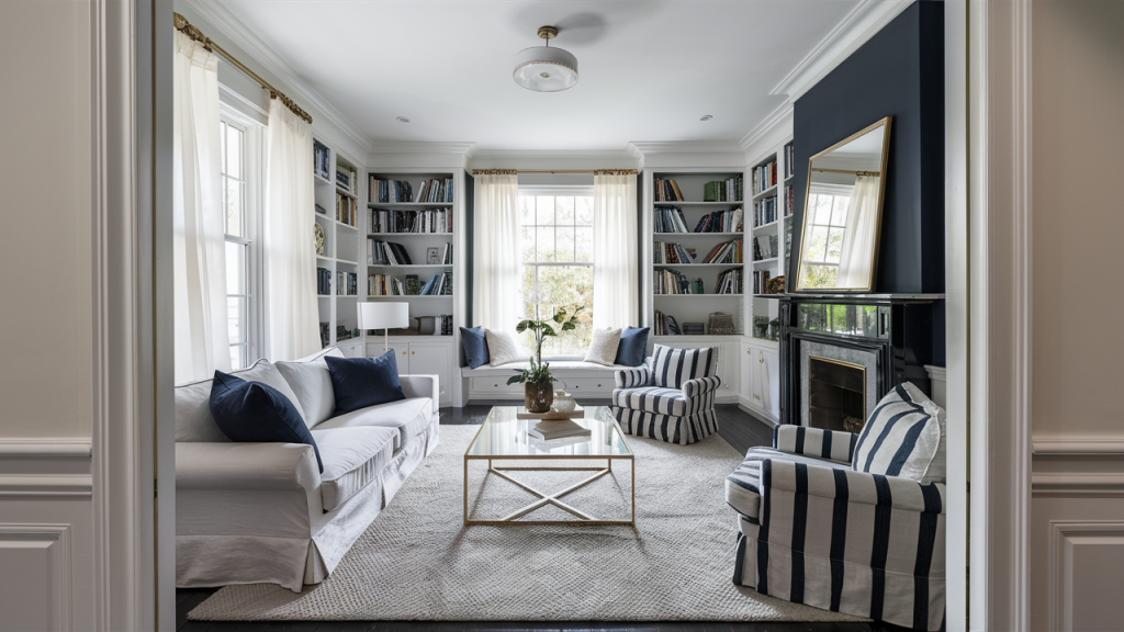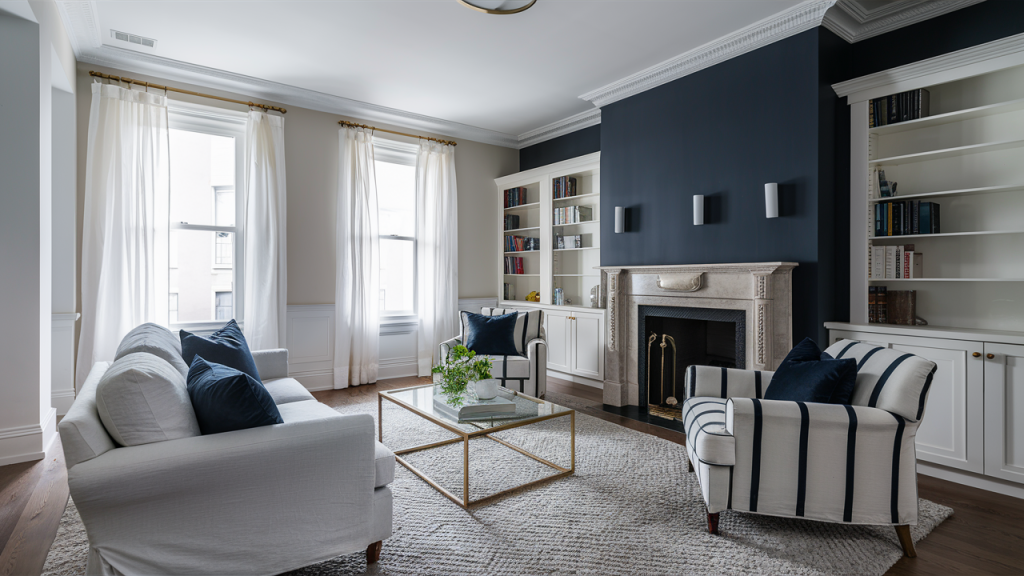 Navy and white is a foolproof duo that exudes sophistication and balance. The deep richness of navy brings depth and elegance, while crisp white keeps the space feeling light and airy. This high-contrast pairing works beautifully in both modern and traditional interiors. Try navy walls with white trim for a dramatic effect, or keep the walls neutral and introduce navy through sofas, curtains, or statement artwork for a polished, timeless aesthetic.