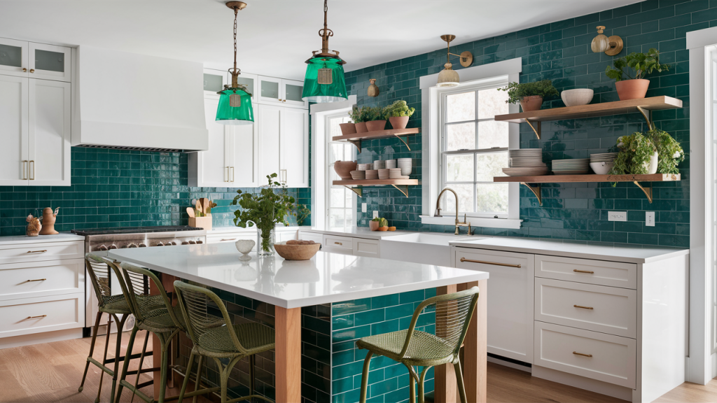 Crisp white keeps interiors feeling bright and open, while emerald green brings a rich, natural vibrancy. This combination works beautifully in spaces that aim for both freshness and depth. Use emerald green in accent pieces like sofas, kitchen cabinets, or artwork, while crisp white forms the backdrop on walls, trim, and furniture. The result is a lively, sophisticated space with a perfect balance of lightness and boldness.