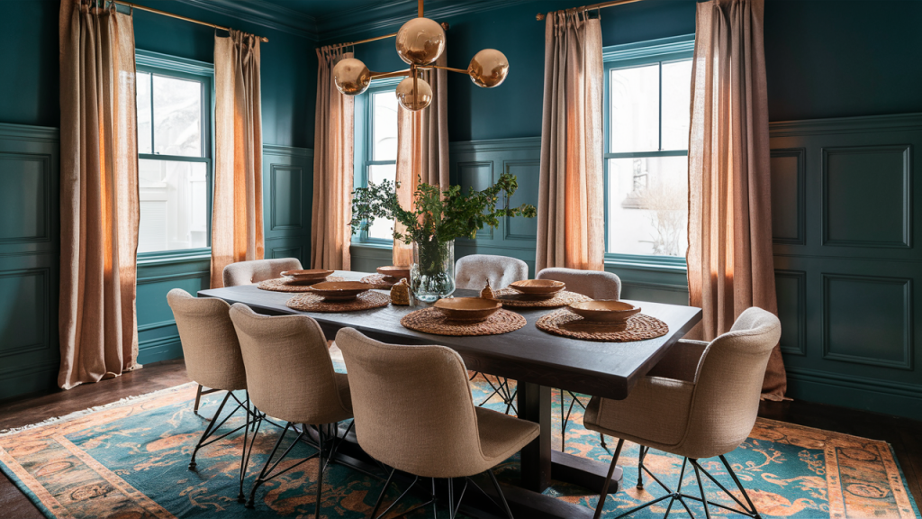 5. Moody Teal and Warm Beige