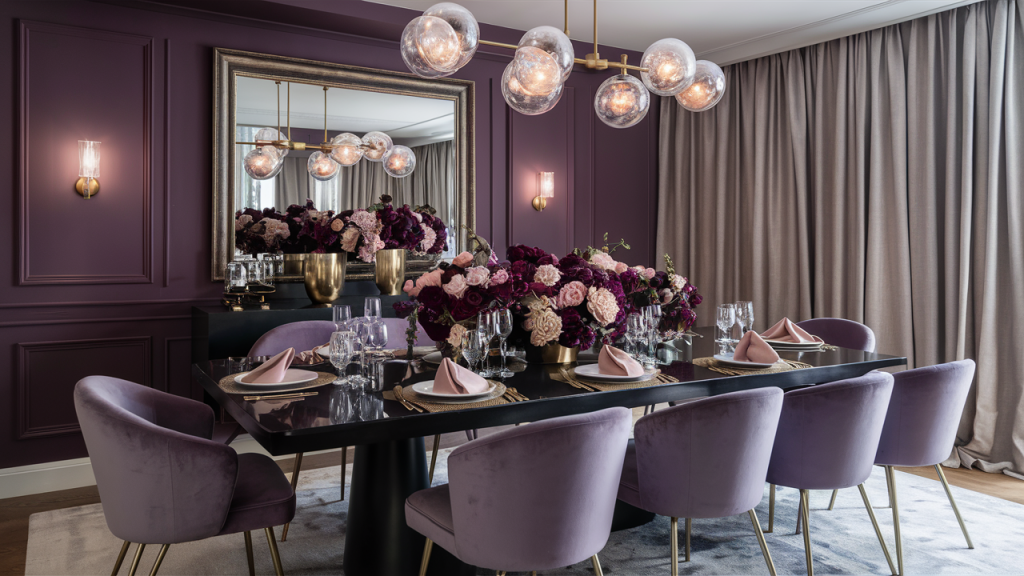 Deep plum adds richness and drama, while soft lavender introduces a delicate, airy contrast. This pairing creates a sophisticated yet cozy atmosphere, perfect for those who love bold yet balanced interiors. Use plum for statement walls, velvet upholstery, or dramatic drapery, while lavender accents—such as pillows, throws, or artwork—soften the overall look. The interplay of dark and light tones makes the space feel dynamic yet inviting.