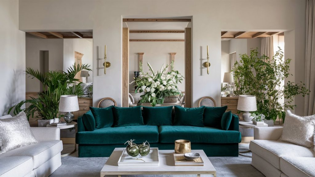 While neutrals are versatile, designers aren’t afraid to upholster statement pieces in color or pattern. A bold velvet sofa or a chair with graphic print can bring life to an otherwise quiet room. The key is balancing that energy with more subdued elements around it. Contrasting textures and finishes also help prevent the space from feeling too loud. A thoughtfully chosen colorful piece can act as a focal point and infuse a room with personality and charm.