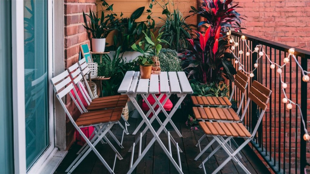 Foldable furniture is a great option for small balconies because it maximizes space while still providing functionality and comfort. It allows you to change the layout of your balcony depending on your needs, whether for lounging, dining, or gardening. Most foldable furniture pieces are lightweight, making them easy to move around and rearrange as needed. Some foldable designs serve multiple functions, like a folding table that doubles as a storage shelf.