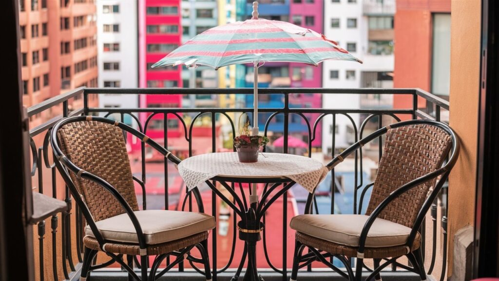A compact bistro set is perfect for a small balcony, maximizing style and function without taking up too much space. Look for a foldable or stackable table and chairs for easy storage. Choose lightweight materials like metal, rattan, or acacia wood for durability. A round or square table (24-28 inches) works well, paired with slim chairs or stools. Add cushions for comfort and a foldable umbrella if needed. Opt for a neutral or vibrant color scheme to complement your space