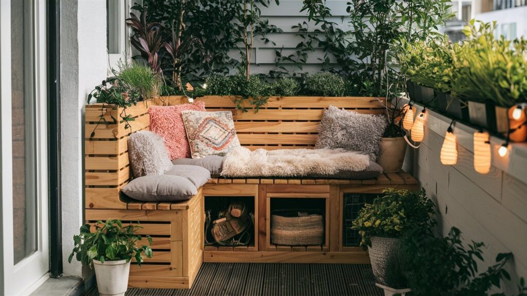An outdoor bench with storage is perfect for a small balcony as it maximizes space by combining seating and storage. It helps declutter by storing cushions, gardening tools, or other essentials while providing a cozy seating area. Its multifunctionality enhances organization without taking up extra room. Additionally, it adds aesthetic appeal, improves functionality, and creates a relaxing nook for enjoying fresh air, all while keeping the balcony neat and efficient.