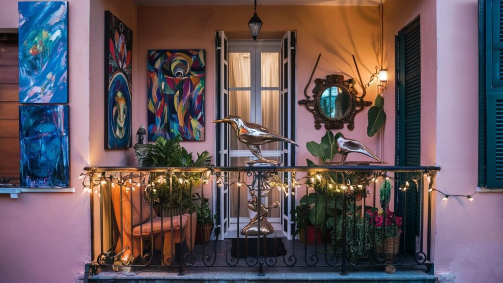 Statement art pieces in a small balcony enhance aesthetics, making the space visually appealing. They create a focal point, adding personality and charm. Art can set the mood, making the balcony feel cozy or vibrant. It maximizes limited space without cluttering, offering style without taking up floor area. Weather-resistant pieces add durability. They also serve as conversation starters, transforming a simple balcony into a unique retreat for relaxation or socializing.