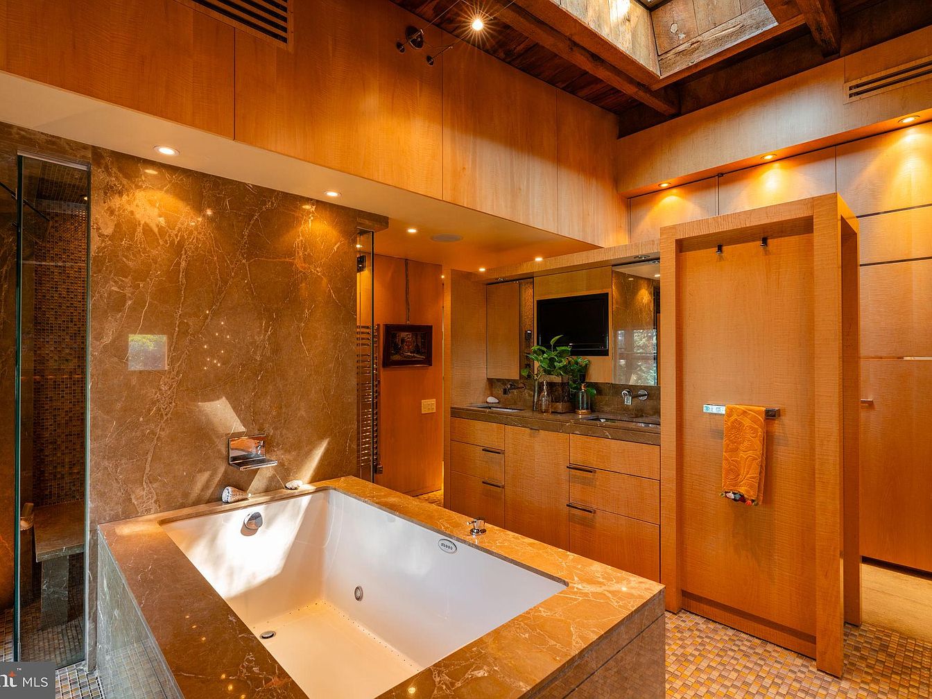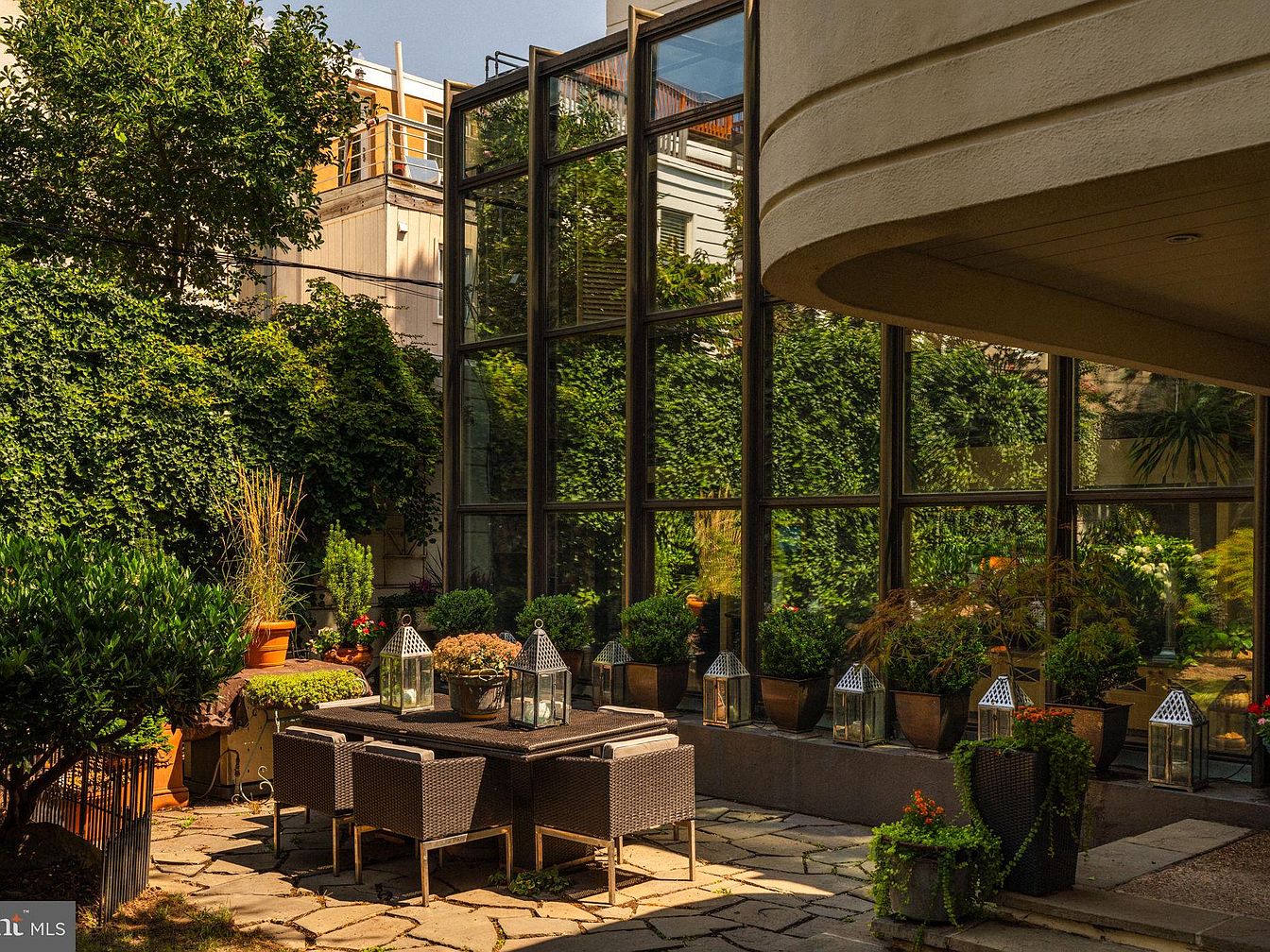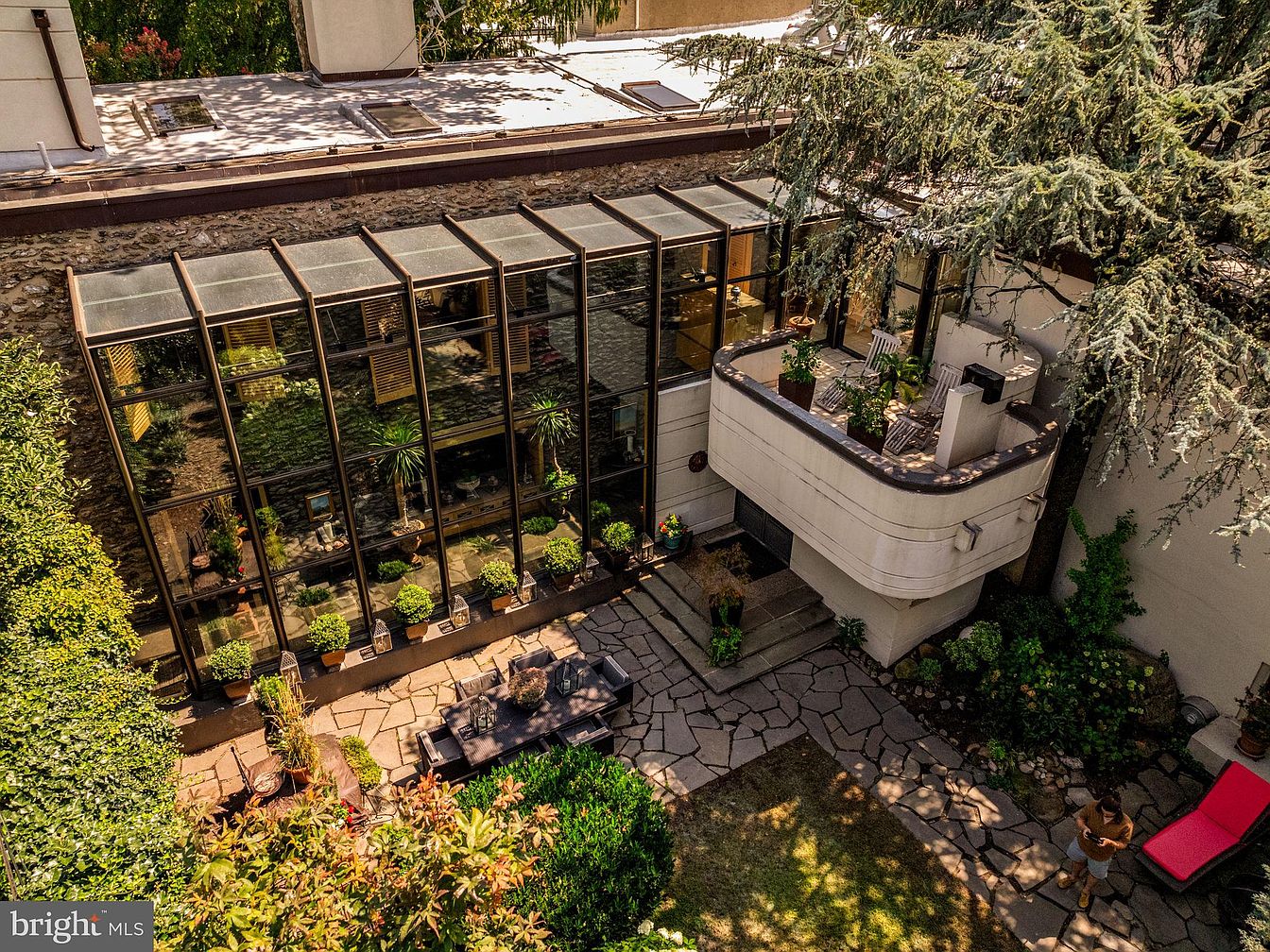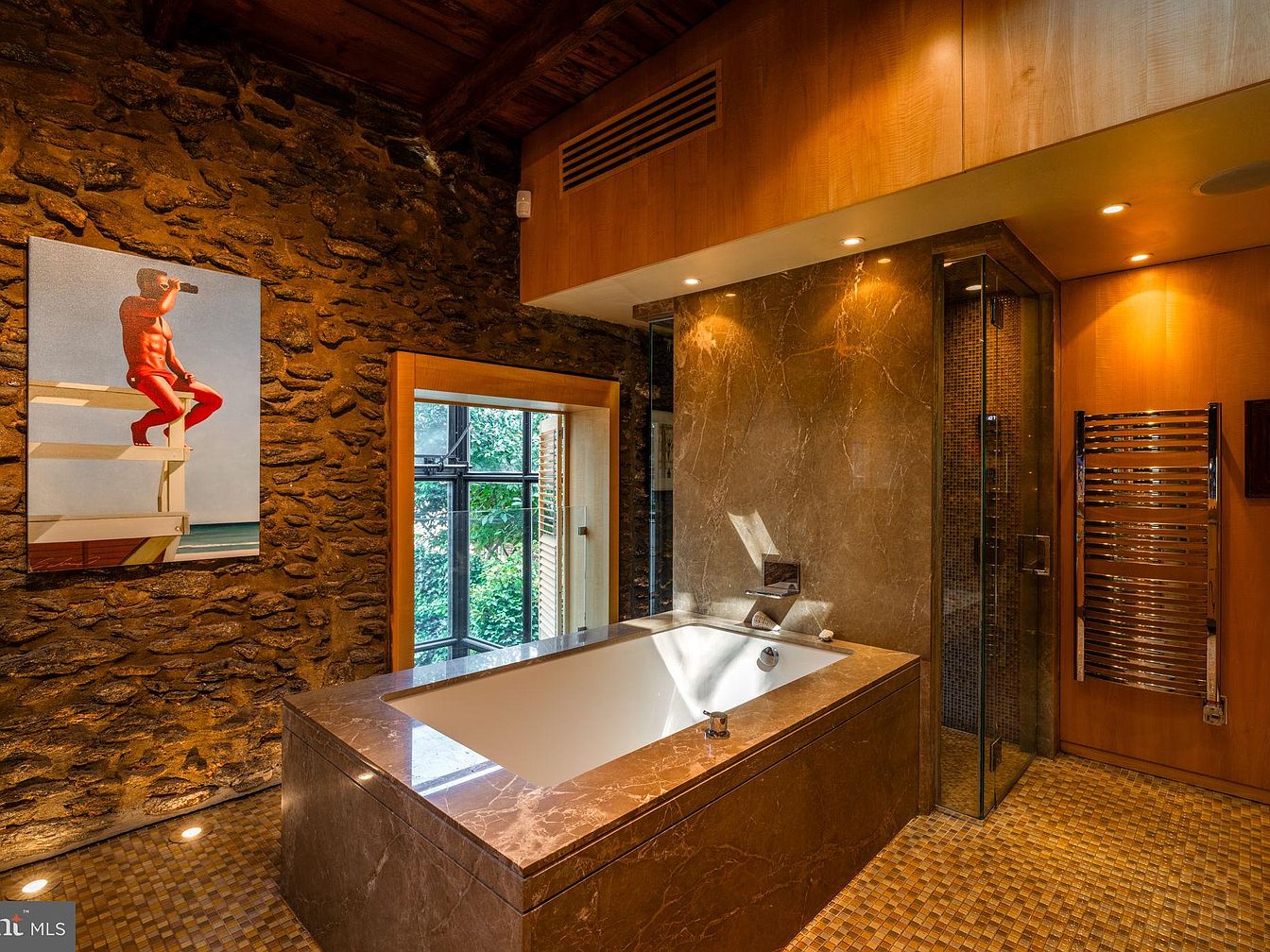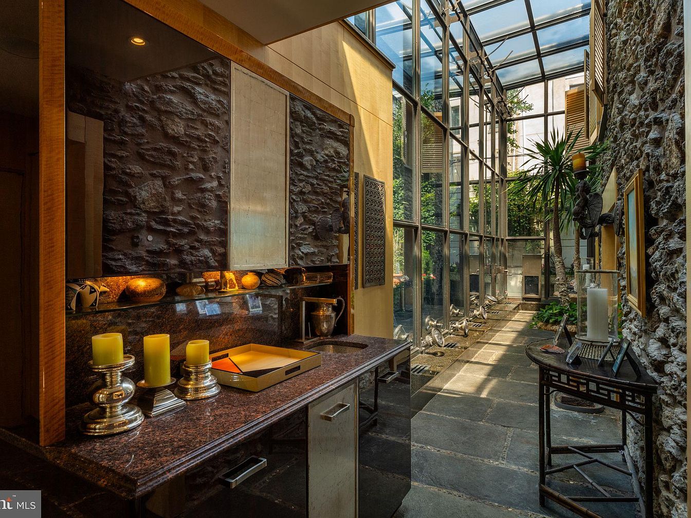 This unique home, in the northwest Art Museum section of Philadelphia, PA, is an extraordinary fusion of architectural styles and history. Originally constructed in 1877 as a blacksmith’s shop, the property has evolved to blend the old with the new, featuring a renovated stone barn and a Victorian home, all united by a striking Frank Weiss-designed glass atrium. The design also incorporates an Art Deco-inspired facade added in the 1970s, which beautifully complements the historical elements and adds a vibrant visual appeal with cascading colorful flowers. The entire living space covers approximately 3,800 square feet, situated on lush grounds with meticulously manicured perennial gardens and a private courtyard with flagstone patios and sculptures, offering an idyllic and pastoral outdoor environment. The home’s unique architectural blend and sophisticated modern upgrades make it stand out from typical city homes, priced at $2,400,000.