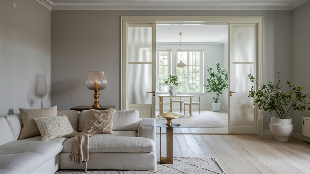 Fluted glass is having a moment, adding subtle texture and elegance to decor. The vertical ridges create a sophisticated effect while allowing light to filter through in a soft, diffused way. Often seen in light fixtures, glass doors, or decorative vases, fluted glass brings a tactile quality to spaces without overwhelming them. This understated detail fits seamlessly into both modern and traditional interiors, offering a refined, timeless look that elevates any room with its quiet elegance.