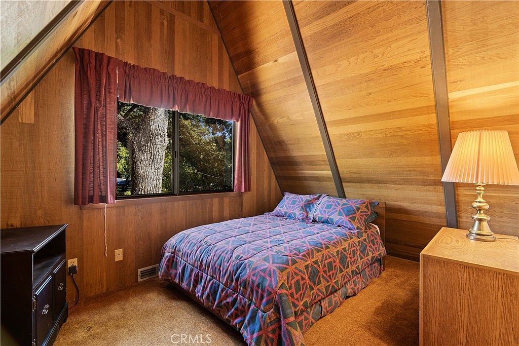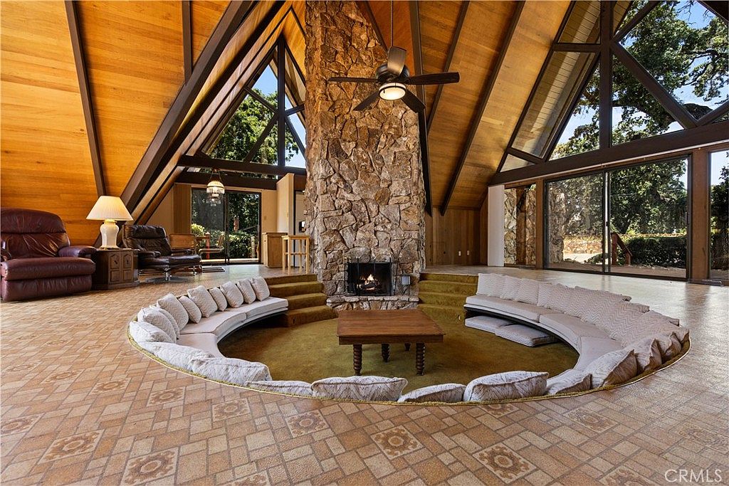 This iconic 1970s custom A-frame lake home, located on 8475 Palace Drive in the prestigious Buckingham community of Kelseyville, CA, is a rare lakeside gem. Built in the 1970s, this retro-styled home showcases dramatic soaring ceilings and vintage custom windows that flood the interior with natural light. The striking floor-to-ceiling stone fireplace anchors the classic sunken conversation pit, a distinctive feature characteristic of its era, perfect for intimate and cozy gatherings. Situated on a level, oversized 0.61-acre lot, the property includes an additional parcel providing rare direct lake access, complete with a private boat launch that enhances lakeside living opportunities. Priced at $650,000, this home is just minutes from Braidot’s Marina, local wineries, golf courses, shopping, and the lake itself, making it a perfect blend of nostalgic charm and prime California lake living.