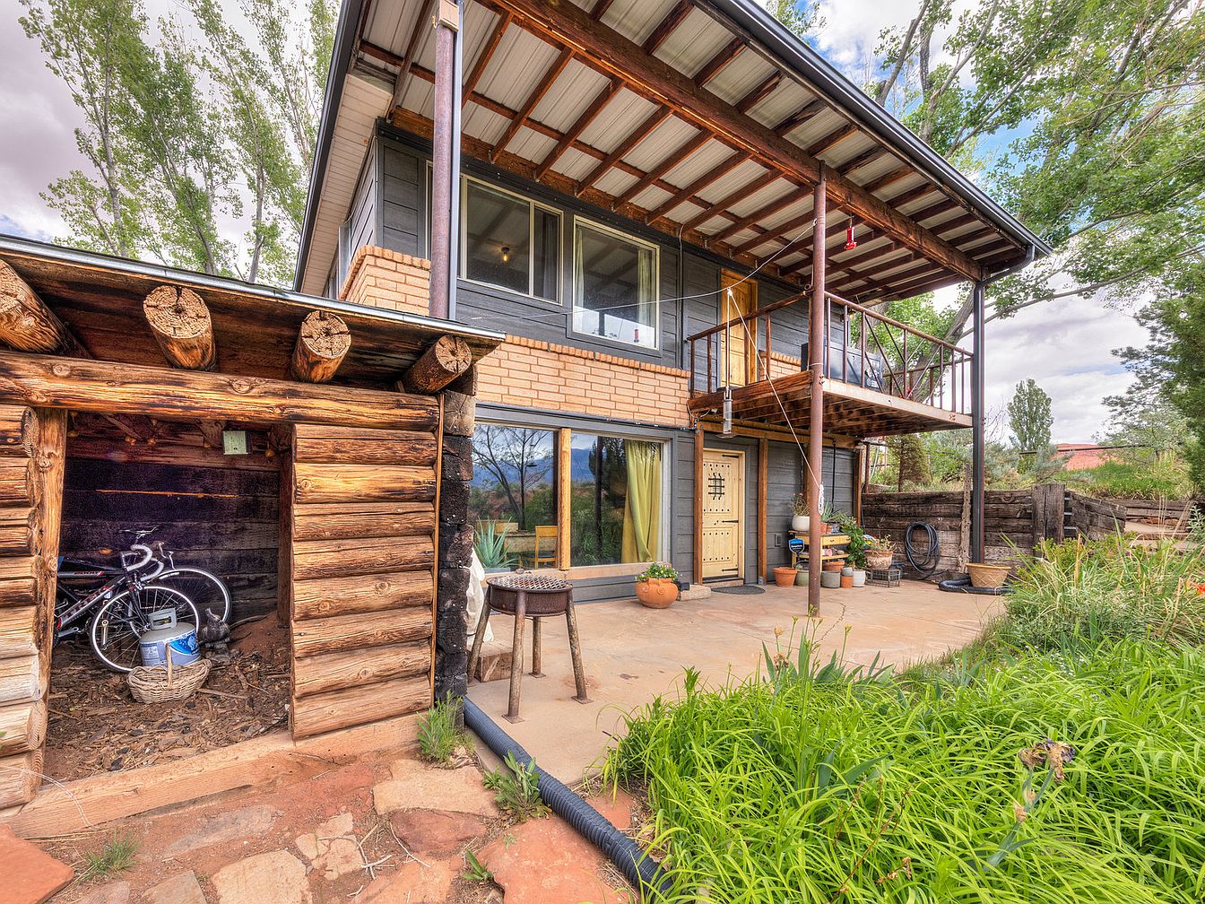 This home showcases a unique architectural style that blends rustic and contemporary elements, nestled in a stunning natural setting reminiscent of a national park. Located just outside the Castle Valley subdivision in Rio Rancho, Moab, Utah, this remarkable property offers breathtaking views of the nearby red rock formations and rugged landscapes. The house sits on a generous 6.28-acre plot, irrigated by three water rights totaling nearly 15 acre-feet, supported by two wells on-site, one of which has been recently upgraded for greater efficiency and longevity. Listed at $890,000, this home offers a harmonious blend of natural beauty and modern updates, making it an ideal retreat for those seeking tranquility and sustainability within Moab’s spectacular environment.