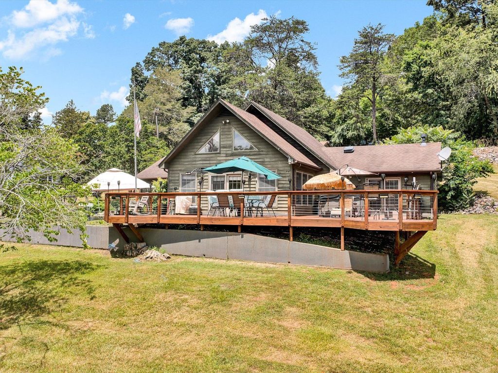 This unique waterfront home located in Wirtz, Virginia, showcases a charming architectural style blending rustic and modern lakefront aesthetics. The spacious open floor plan highlights wide, scenic water views and includes a large deck equipped with a hot tub, perfect for relaxation and entertaining guests. The property offers a one-slip boat dock with ample seating, ideal for parties by the water. The large kitchen and dining area overlook the lake, providing picturesque views during meals. Outdoor storage is plentiful for recreational equipment and toys. Priced at $799,000, this waterfront property is a must-see for those seeking a comfortable and functional lakeside retreat.