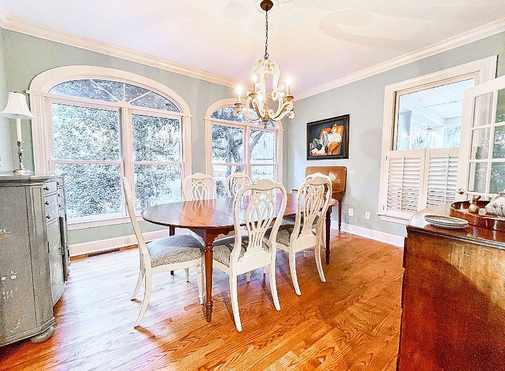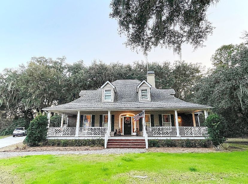 This charming home on Johns Island, SC, embodies classic Low Country architectural style, characterized by its inviting full front porch, spacious layout, and Southern moss-draped oak surroundings. It was thoughtfully designed to create a welcoming atmosphere, featuring elegant hardwood floors, plantation shutters, and ornate moldings that enhance its historic charm. Listed at $1,150,000, this residence boasts a spacious eat-in kitchen with stunning granite countertops and a functional kitchen island, complemented by sliding glass doors that open to a sunroom, perfect for enjoying natural light. This home combines timeless Southern elegance with modern amenities on a generous plot, making it a desirable retreat on Johns Island.