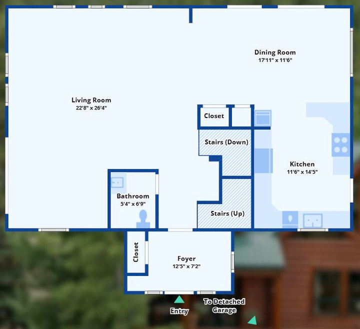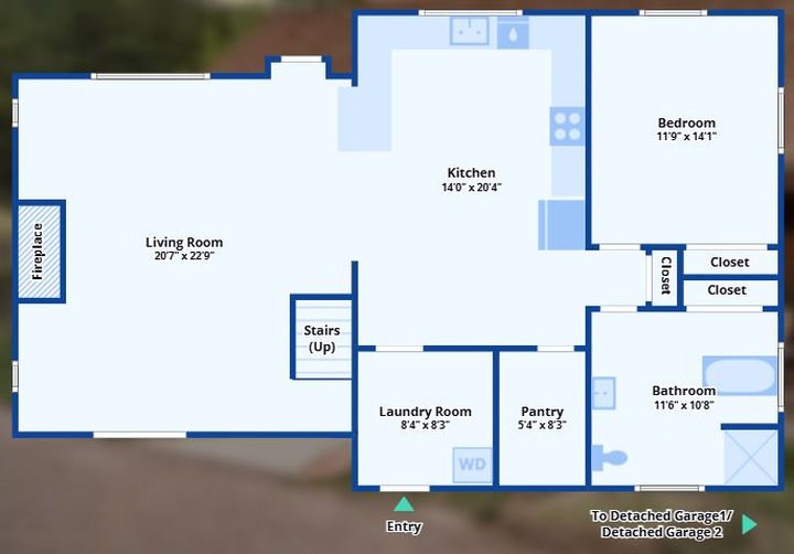 The main level boasts an open and airy layout, anchored by a spacious living room with a cozy fireplace—ideal for relaxing or entertaining. The kitchen offers ample counter space and flows effortlessly into the living area. A generously sized bedroom, full bath, and multiple closets provide comfort and storage. Thoughtful additions like the laundry room and pantry enhance daily convenience, while access to the detached garage adds extra functionality.