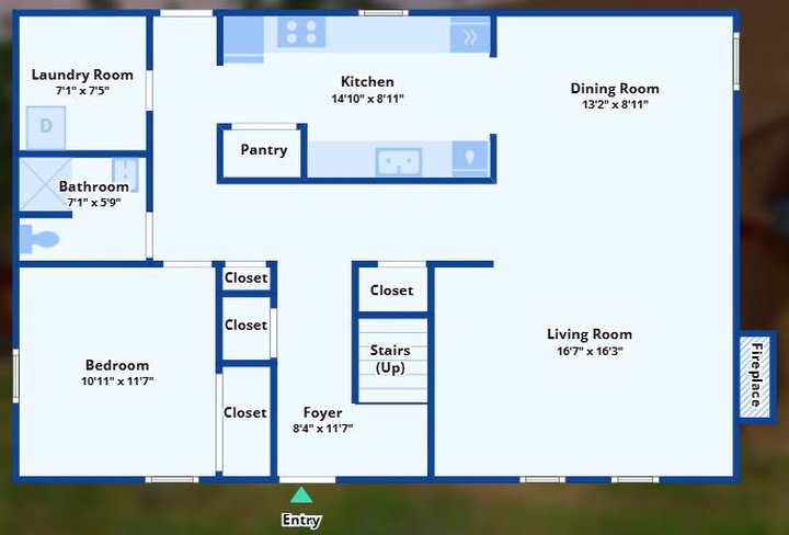 The main level offers a smart, open layout designed for easy living and functionality. A spacious living room with a fireplace flows seamlessly into the dining area and kitchen, ideal for entertaining. The bedroom and full bath provide privacy, while the laundry room adds everyday convenience. Multiple closets and a walk-in pantry ensure ample storage, and the central foyer creates a welcoming entry into this thoughtfully planned space.