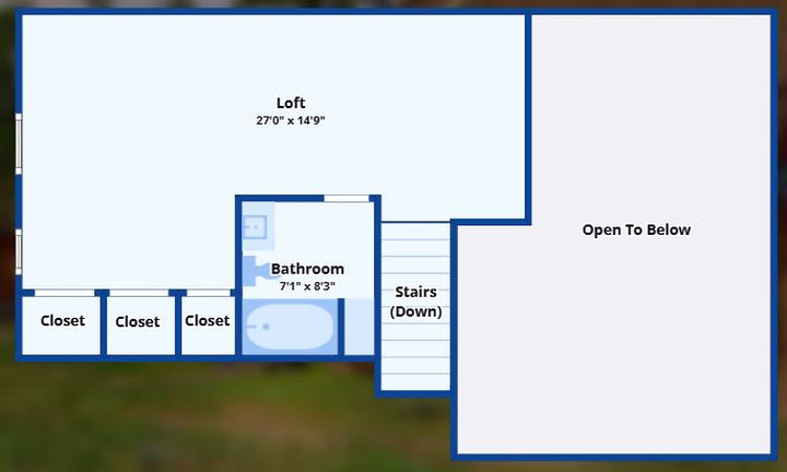 The upper level features a spacious loft overlooking the main living area, perfect for a home office, guest space, or lounge. A full bathroom adds convenience, while three large closets provide ample storage. The open-to-below design creates a bright and airy atmosphere, enhancing the home’s sense of space and connection between levels.