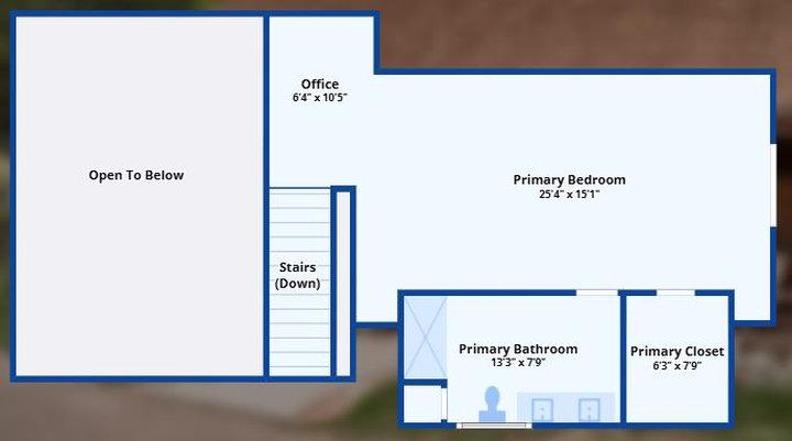 The upper level offers a private retreat, featuring a spacious primary bedroom with generous dimensions and a serene atmosphere. A large en-suite bathroom and walk-in closet enhance comfort and convenience. An adjacent office space provides a quiet spot for work or study. Overlooking the main floor below, the open-to-below design adds an airy, connected feel while still offering privacy in this thoughtfully arranged upper level.