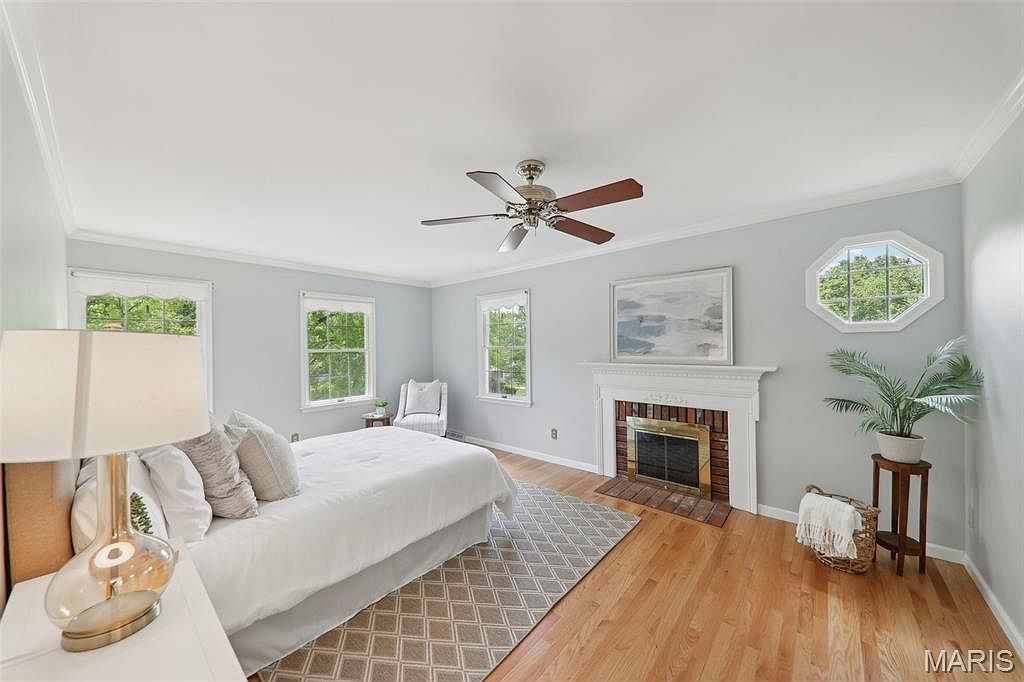 This elegant two-story colonial home is located in the highly desirable Dougherty Lake neighborhood of Saint Louis, MO. Built approximately 36 years ago, this residence has been meticulously maintained and is now available for the first time in over three decades. Featuring 4 bedrooms and 3 bathrooms, the home offers a spacious layout including a formal dining room, a comfortable living room with a classic fireplace, and an updated chef’s kitchen designed for modern culinary needs. The primary suite has been renovated and highlights a cozy fireplace for added warmth and relaxation. The finished lower level provides flexible space that can be adapted as a home office, gym, or additional living area. Outside, residents can enjoy a screened-in porch and a large patio, perfect for entertaining guests on a private, beautifully landscaped lot. Maintenance-free updates have been extensively completed, ensuring the home is move-in ready. The listing price is set at $650,000. Additional features include a sunroom and a two-car garage, rounding out this exceptional offering.
