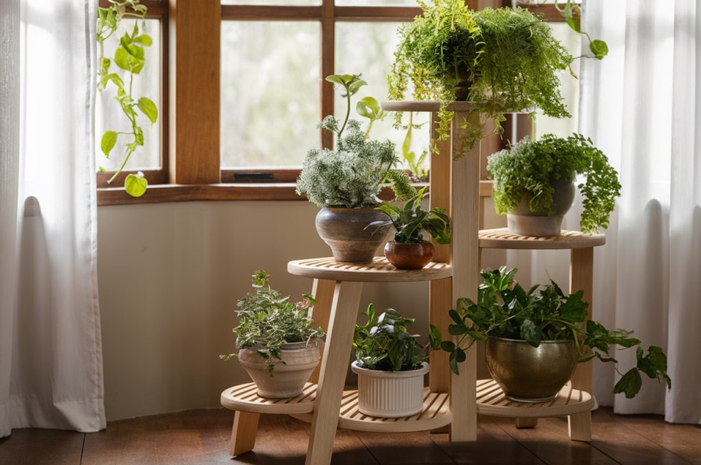 A plant ladder is a stylish way to showcase greenery without overwhelming a small space. These tiered, leaning structures allow you to arrange multiple plants in a compact vertical display, making them ideal for apartments, balconies, or corners. Opt for a wooden or metal frame that complements your interior style. Mix and match plant sizes for a dynamic look—small succulents on the upper tiers and lush, leafy varieties like ferns or pothos on the lower ones. This setup adds height and visual interest while keeping the floor space open and uncluttered.