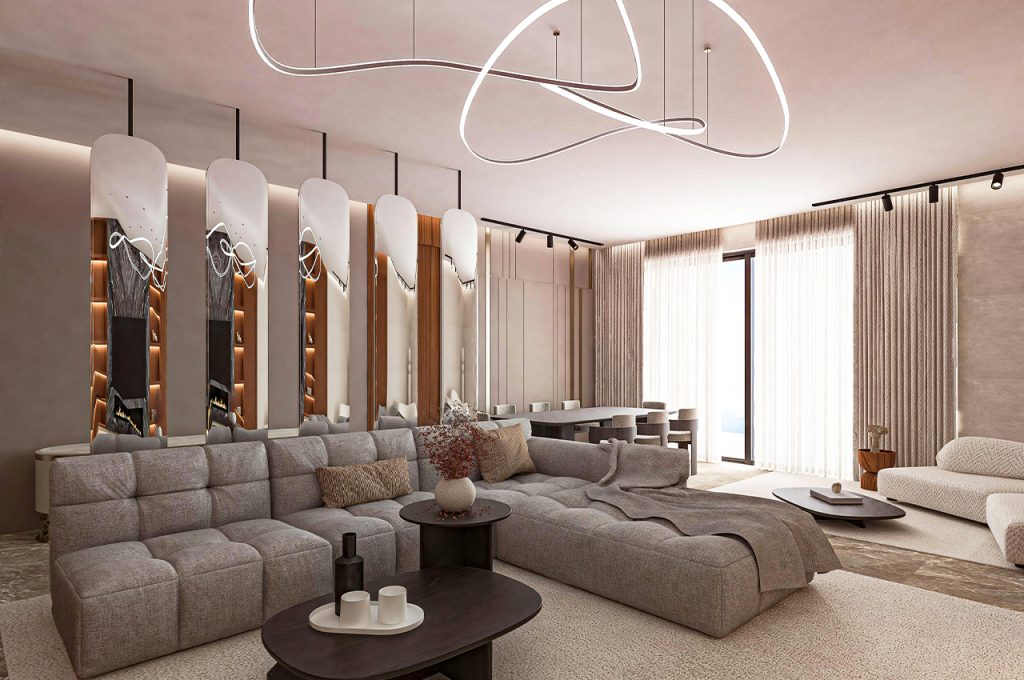To make a room appear taller, keep the ceiling as clean and uncluttered as possible. Avoid heavy molding, ornate beams, or oversized light fixtures that can visually lower the ceiling. Choose minimalist alternatives such as recessed lights, low-profile flush mounts, or streamlined pendants that won’t overwhelm the room. A smooth, uninterrupted ceiling surface enhances vertical flow and creates an open, airy feel that makes the room seem more spacious and elevated.