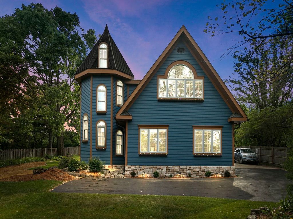 This distinctive home at 1616 Riverside Ave in Saint Charles, IL, presents a charming blend of classic and custom architectural elements, evocative of a Victorian or Queen Anne-inspired style with its prominent turret, steeply pitched rooflines, and detailed window framing. Nestled on a double lot overlooking the scenic Fox River, this residence offers generous space and natural light through Pella designer windows. Built with thoughtful craftsmanship, the home features 4 bedrooms and 1 bathroom, with a spacious living room boasting 10′ ceilings and a large closet, and areas well suited for a dining table or additional family room. Priced at $485,000, this lovingly maintained home is ready for immediate enjoyment, requiring little more than moving in. The combination of elegant aesthetics, practical amenities, and a prime riverside location make this a truly one-of-a-kind property in a desirable community.