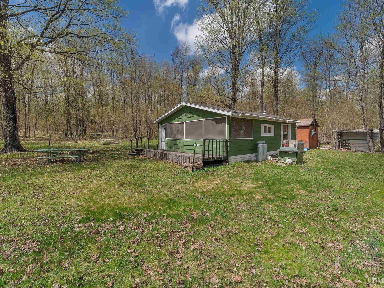 This charming home is a quaint cabin situated in a secluded location within Forsyth Township, Lake, Michigan. The cabin embodies a rustic, traditional architectural style, ideal for those seeking an off-grid retreat immersed in nature. While the exact year of construction is not specified, this cabin offers foundational simplicity with potential needs for some sprucing up. It boasts two cozy bedrooms and an open main living area, making it functional for a small family or a hunting camp. The property spans five acres, providing ample private outdoor space with no close neighbors, fostering a serene and peaceful environment. Winter enthusiasts are welcomed by a fireplace, making this cabin a compelling wintertime destination accessible via a seasonal road. The listing price for this unique opportunity in the Upper Peninsula of Michigan is $89,000, presenting a great value for a private wilderness escape with essential off-grid infrastructure and ample outdoor space to create lasting memories.