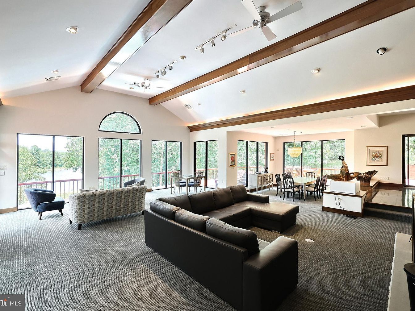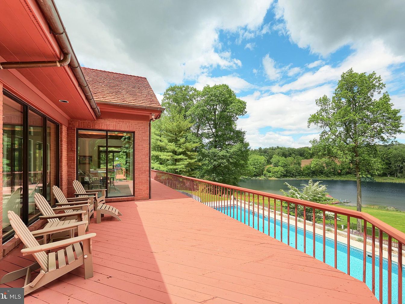 This distinguished custom-built rancher, nestled in the serene locale of Spring Grove, PA, presents a classic ranch architectural style featuring all-brick construction with hardy redwood trim, a cedar shake roof, and elegant copper gutters and spouts. Set on a sprawling over 7-acre plot, the estate provides an extensive 405 feet of direct frontage on Lake Pahagaco, blending natural tranquility with sophisticated lakeside living. Priced at $1,700,000, this private lakefront estate encompasses 6 spacious bedrooms and 5.5 bathrooms, designed with an open, airy floor plan highlighted by expansive windows, lofty ceilings, and skylights that fill the interior with natural light. Situated at 174 Springhouse Lane on a peaceful cul-de-sac, this estate offers a rare blend of luxury, nature, and ultimate privacy, making it an exceptional retreat and an entertainer’s paradise.