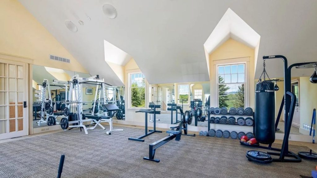 19. Light-Filled Home Gym with Vaulted Ceilings