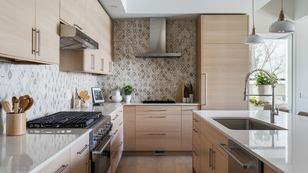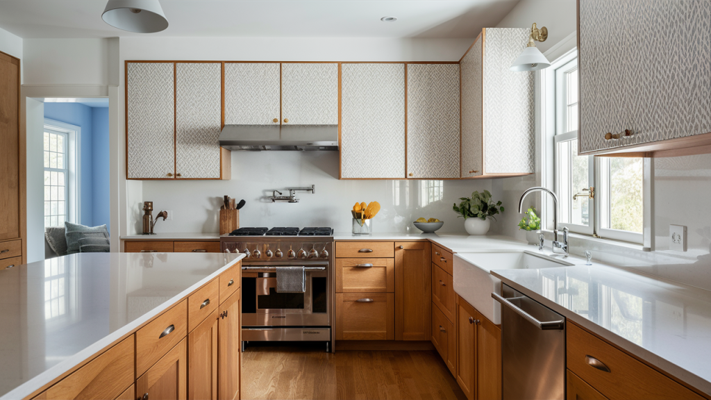 For a surprising pop of personality, line the interiors of your cabinets with wallpaper. This hidden design element adds color, pattern, or texture that delights every time you open a door. It’s a fun, affordable way to customize your kitchen without overwhelming the space. Choose washable wallpaper for easy maintenance, and turn an often-overlooked area into a unique style statement.
