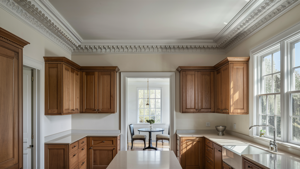 Adding crown molding to the top of your cabinets elevates their appearance, giving them a custom, built-in look. This architectural detail creates a graceful transition between cabinets and ceiling, adding height and sophistication. Crown molding can range from simple to elaborate, making it easy to match your kitchen’s style. It’s a classic upgrade that adds character and visual interest without altering the cabinet’s core.