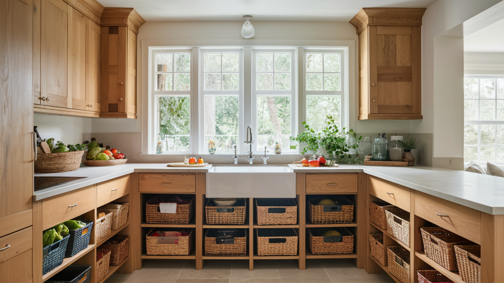 Adding open baskets or bins inside or beneath cabinets brings both function and rustic charm to your kitchen. These handy storage solutions keep essentials organized and within easy reach while introducing texture and warmth. Whether woven, wire, or wooden, baskets create a casual, approachable vibe that softens the cabinetry’s rigidity. They’re perfect for corralling everything from fruits and veggies to towels and kitchen tools, making your space feel effortlessly stylish and lived-in.