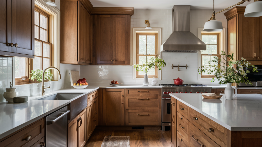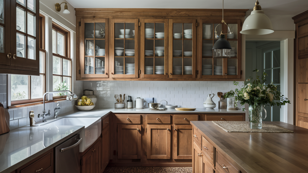Swapping solid cabinet doors for glass panels breathes new life into traditional wood cabinets. Glass fronts create visual interest and lighten the room by reflecting light. They allow you to showcase beautiful dishware or collectibles, adding depth and elegance. Whether you choose clear, frosted, or textured glass, this update maintains the wood frame while providing a fresh, airy feel that’s both functional and decorative.