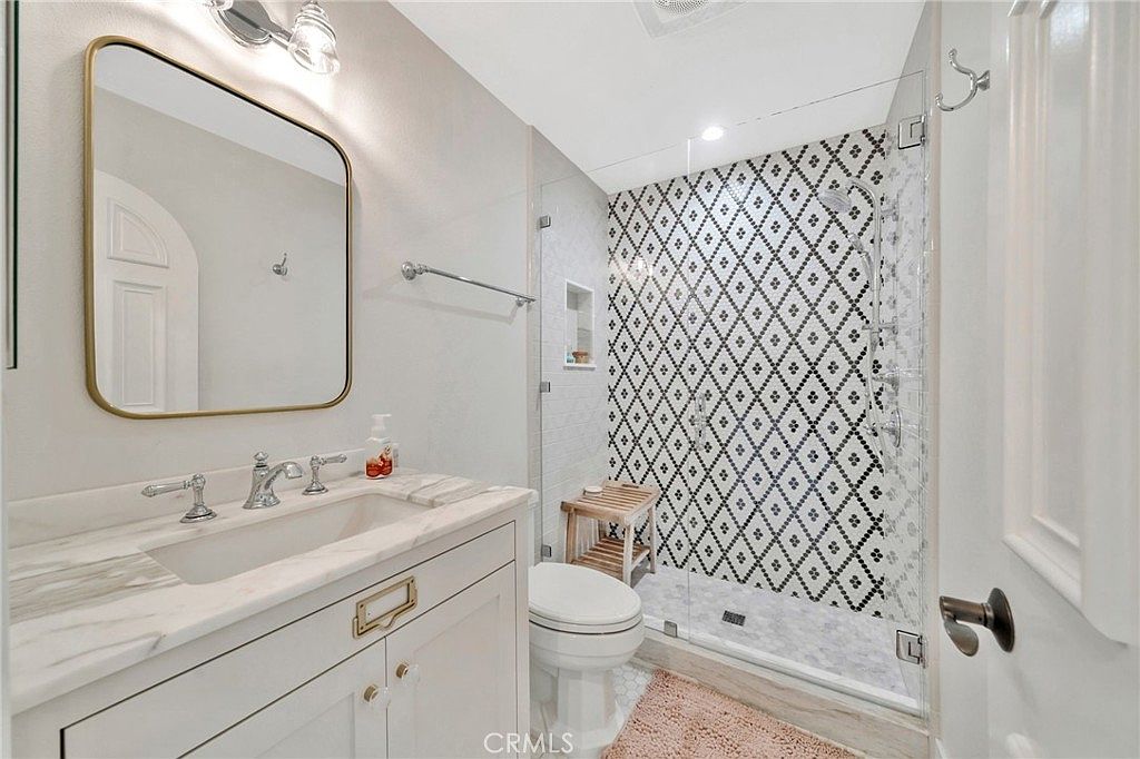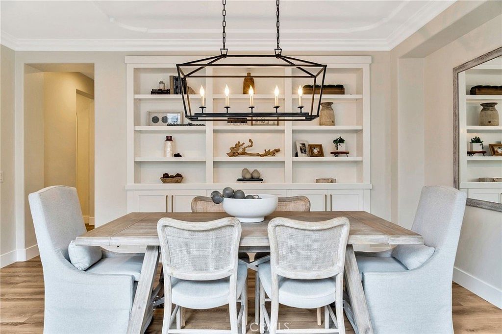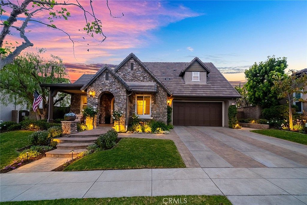 This exquisite English Cottage-inspired residence is perfectly nestled in the heart of Ladera Ranch’s most coveted neighborhood, located on a tranquil cul-de-sac within the prestigious guard-gated community of Covenant Hills in Mission Viejo, CA. Originally built with timeless charm, this stunning two-story home boasts four en-suite bedrooms and five bathrooms, situated on an expansive 8,905 square foot lot. Inside, the warm contemporary interiors showcase modern luxury vinyl plank flooring, designer paint, custom wall coverings, upscale lighting, elegant arched doorways, and bespoke millwork blending functionality with aesthetic appeal. The open-concept layout extends to a sunlit breakfast room and adjacent family room featuring a cozy gas fireplace that opens to a private outdoor courtyard illuminated with string lights and a gas fire pit. The main level includes a luxurious primary suite with a recently updated spa-inspired bathroom, dual vanities, a jetted tub, separate shower, and two large walk-in closets. Additional highlights on this level include two more en-suite bedrooms (one ideal for a home office or multigenerational living) and a newly remodeled laundry room. Outdoors, the backyard oasis offers a covered patio and a fully equipped outdoor kitchen bar with a sink, refrigerator, and built-in BBQ. Offered at $2,399,000, this refined home combines classic architectural charm with modern luxury in one of Mission Viejo’s premier communities.