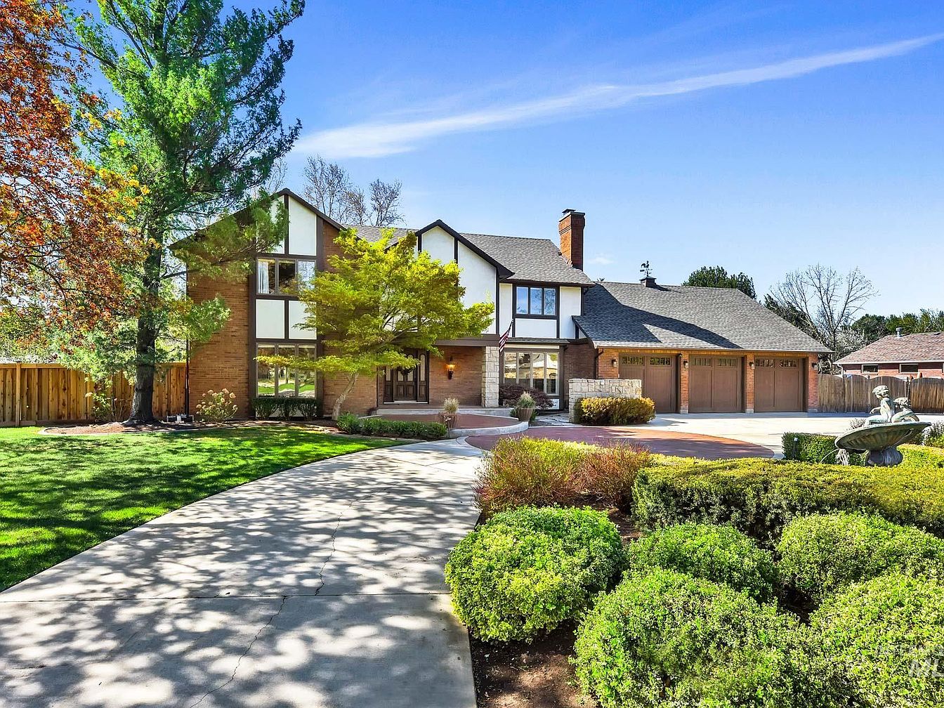 This incredible Tudor-style home in Boise, Idaho offers a unique blend of classic architecture and modern amenities. Situated on nearly an acre of land with no HOA, this property features a serene, park-like backyard perfect for entertaining. The house showcases light oak hardwood floors throughout the main level and upstairs hallways, enhancing its warm and inviting atmosphere. The kitchen is fully equipped with double ovens, ideal for hosting holiday gatherings. The spacious primary suite includes three closets, two of which are walk-ins, providing ample storage. A beautifully finished basement includes a large great room, a dedicated gym, extensive storage, and a cozy space for movie or game nights. Outdoor features are exceptional, with a covered living area complete with automatic sun shades and a gas/wood fireplace. Two fire pits, one with custom sunken seating and another near the pool, create a magical ambiance. Additional outdoor amenities include lush landscaping, ambient gas tiki torches, a jacuzzi, and a pool-side bathroom. The property is completed by a circular driveway with a welcoming fountain, an oversized garage, and gated RV parking. Listed at $1,495,000, this home offers a rare opportunity to own a spacious and beautifully maintained retreat just minutes from Eagle Rd and The Village.