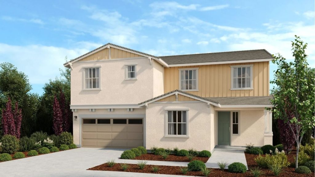 This stately two-storey residence in Lathrop, CA blends modern design with classic touches. A clean, symmetrical exterior features a soft neutral palette, crisp white trim, and a welcoming front entry. Broad windows provide abundant natural light, while the manicured front lawn and paved walkway enhance the inviting curb appeal. Its balanced architecture and generous size reflect both comfort and sophistication.