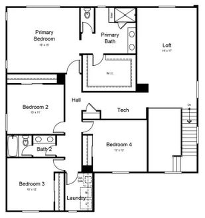 The second floor offers a bright, well-organized layout with four generous bedrooms, including a primary suite featuring a spacious walk-in closet and elegant bath retreat. A central loft provides flexible space for lounging or play, while the tech area is ideal for work or study. Two full bathrooms and a convenient upstairs laundry add everyday ease, making this level perfect for both busy mornings and relaxed evenings.